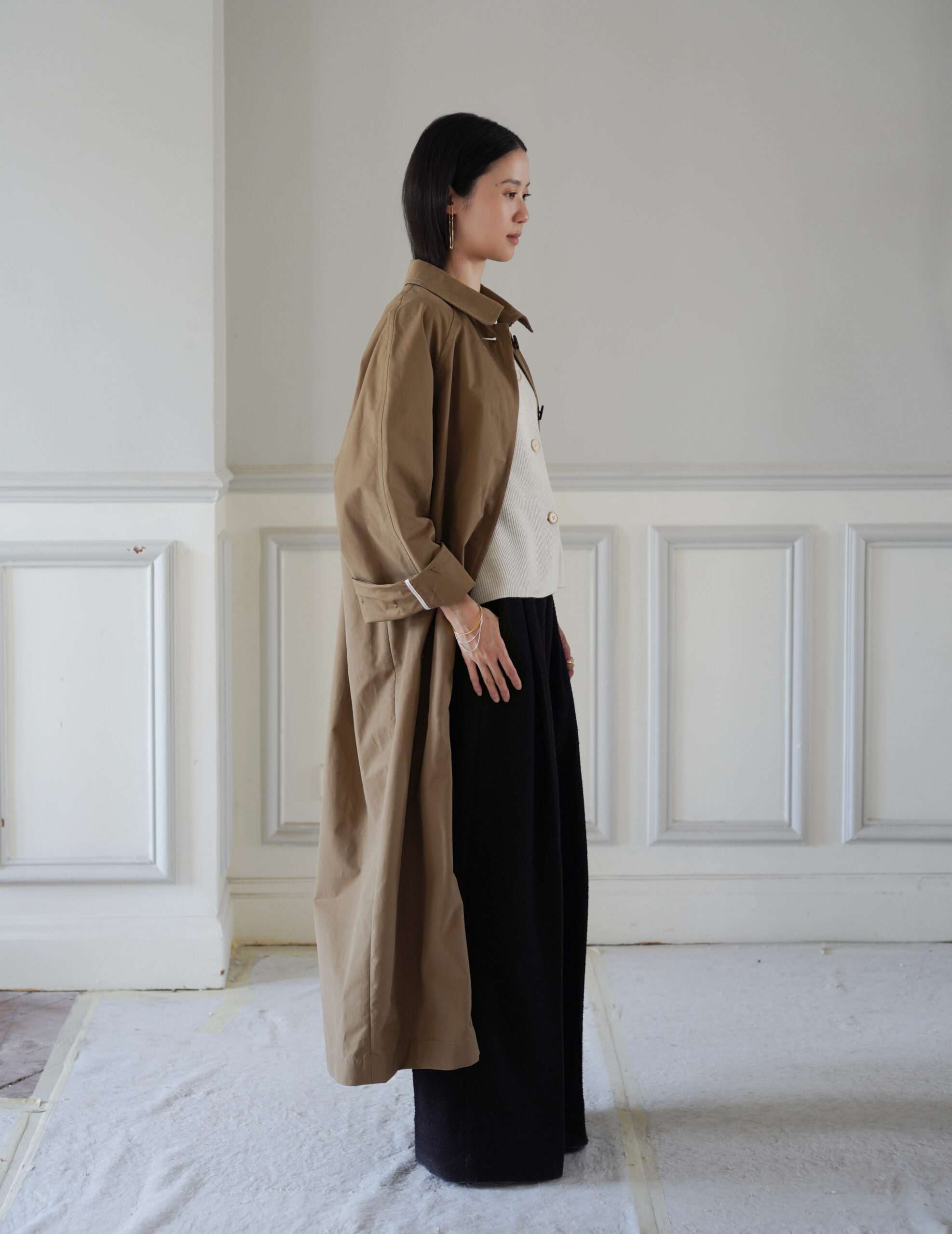 From Danish brand MKDT Studio, the Caro Half Panama Coat is a lighter version of the brand’s iconic Caro Coat, retaining its timeless unisex silhouette. Made from lightweight cotton in a half-panama weave, it is designed without lining for ease and movement, and detailed with contrasting white piping inside — a subtle touch revealed when worn.