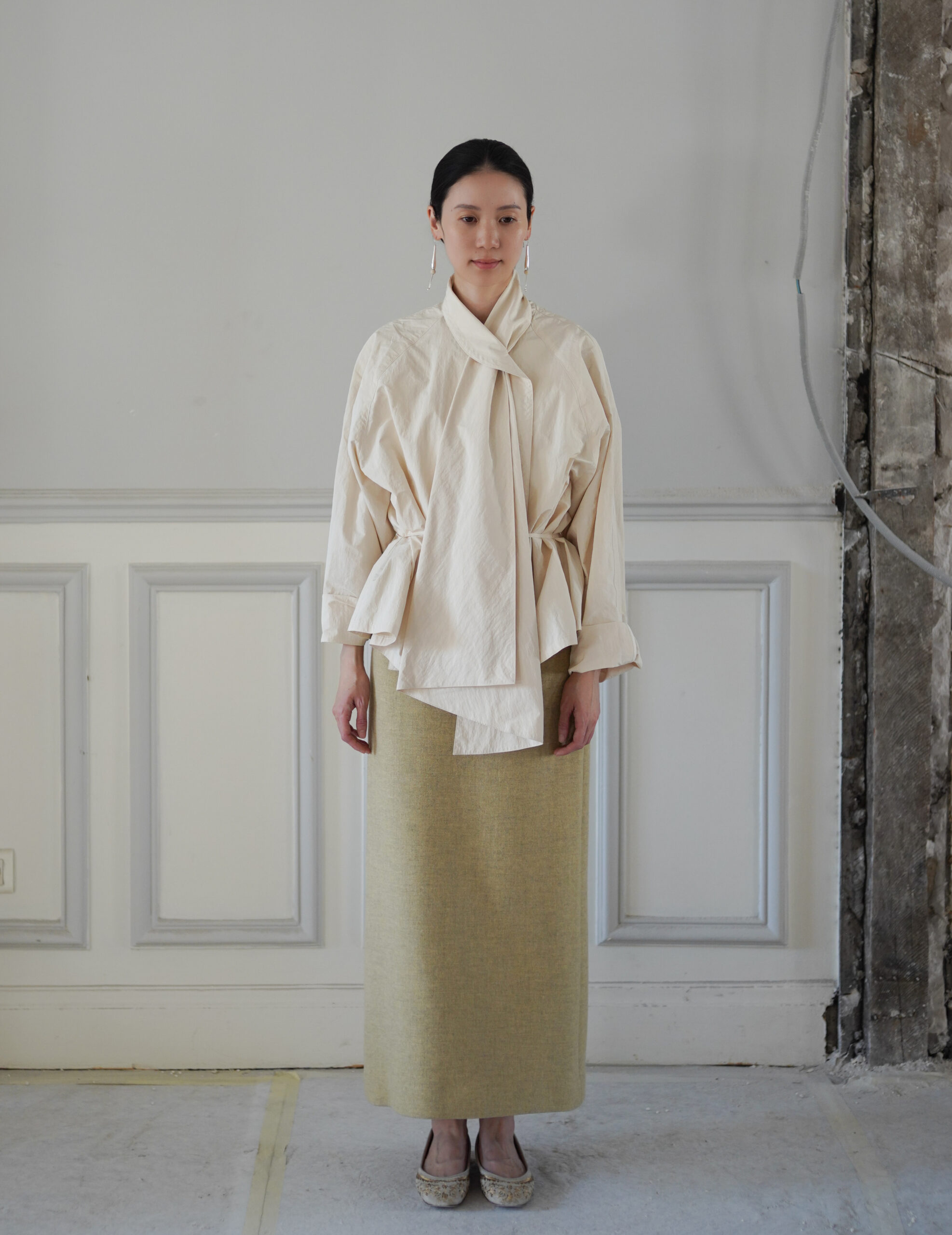 “Our collection features a selection of timeless pieces, with structured silhouettes and delightful details. All garments are carefully designed and manufactured in Korea, and we take pride and pride in the quality of our garments .”