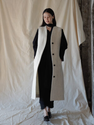 The Jenne Jacket from Danish brand MKDT STUDIO is crafted from 100% wool, offering a structured yet soft texture. With its boxy silhouette, neat topstitching, and slit pockets, the design highlights an architectural elegance. The calming oat shade makes it versatile for both everyday wear and formal occasions, reflecting the brand’s minimalist Nordic spirit.