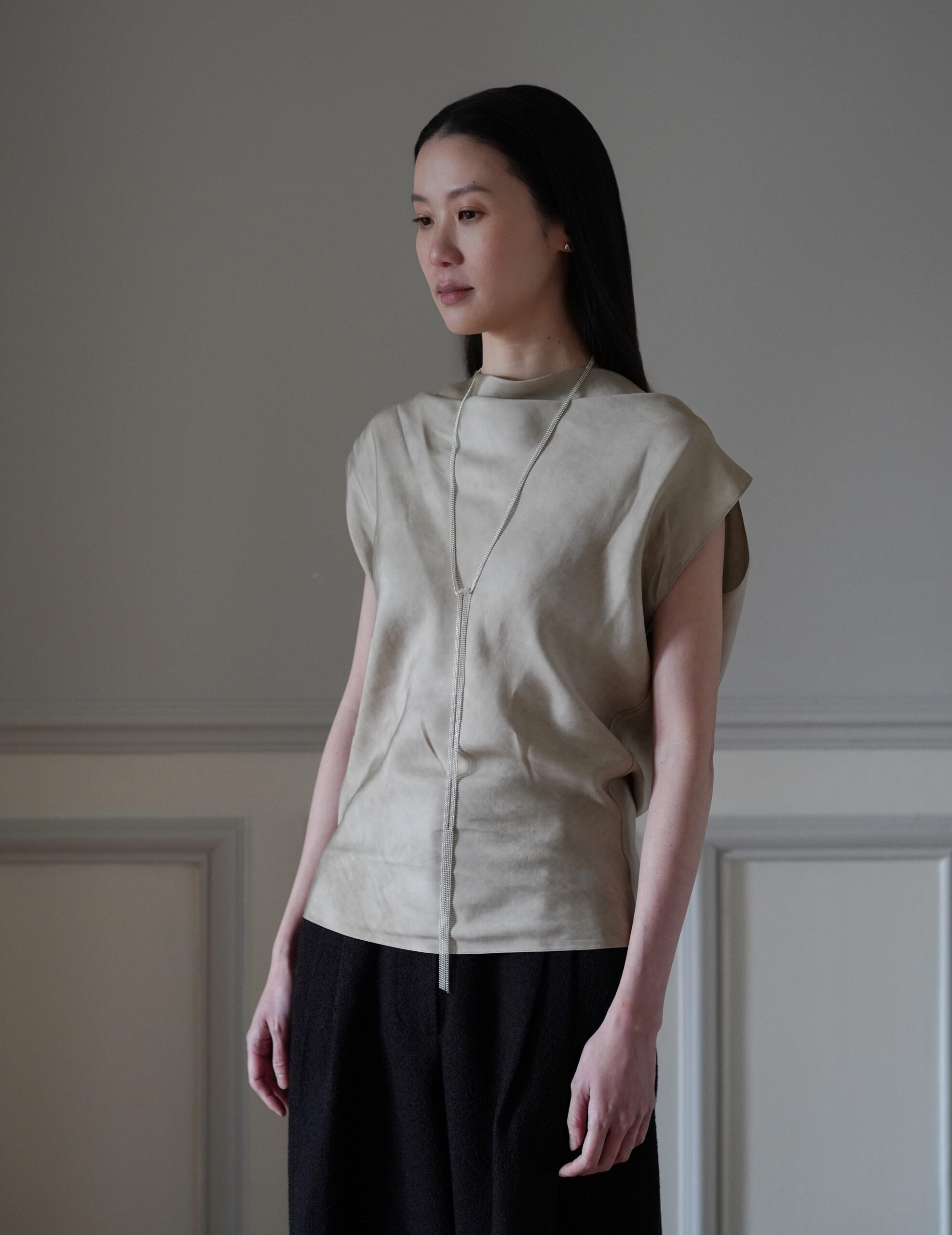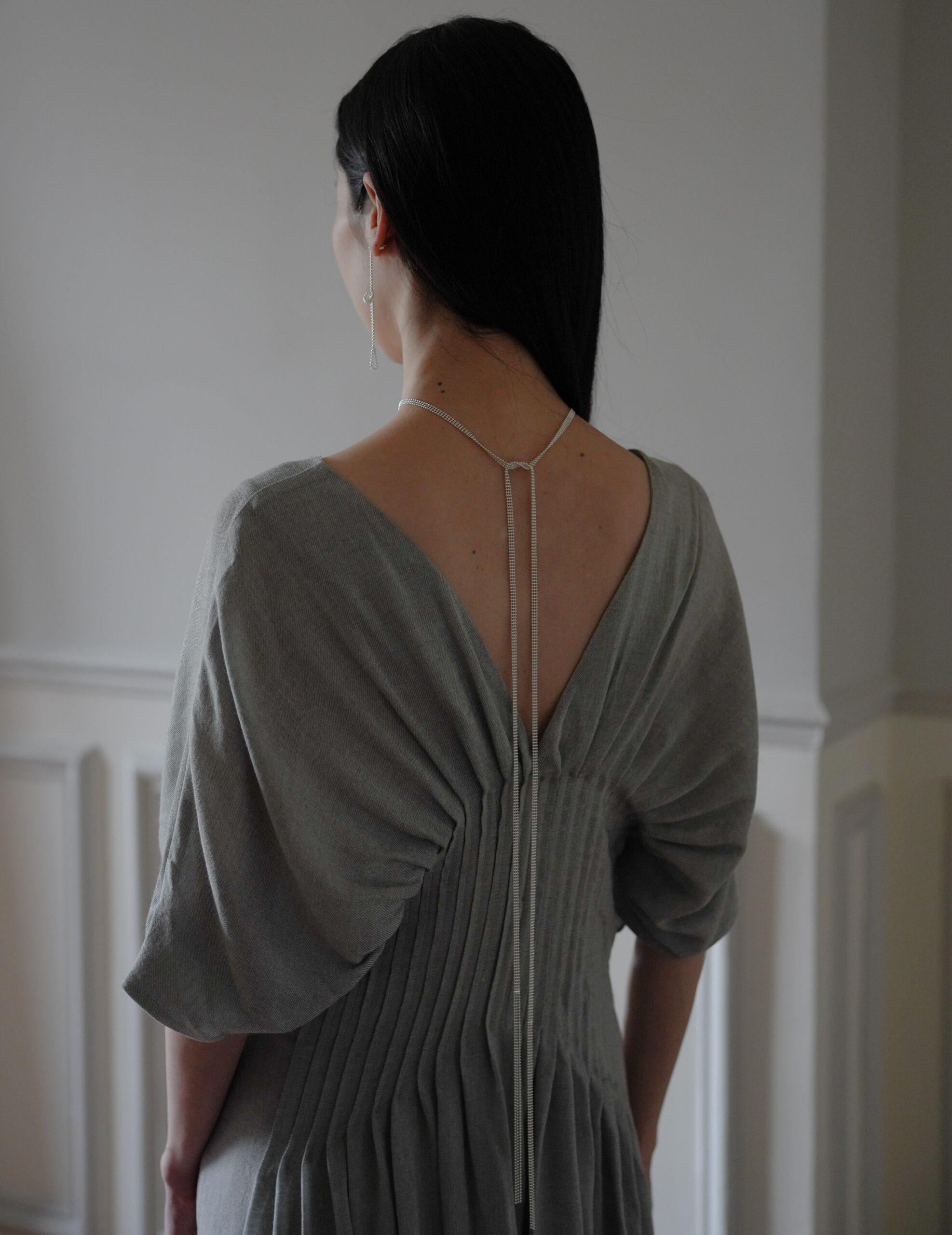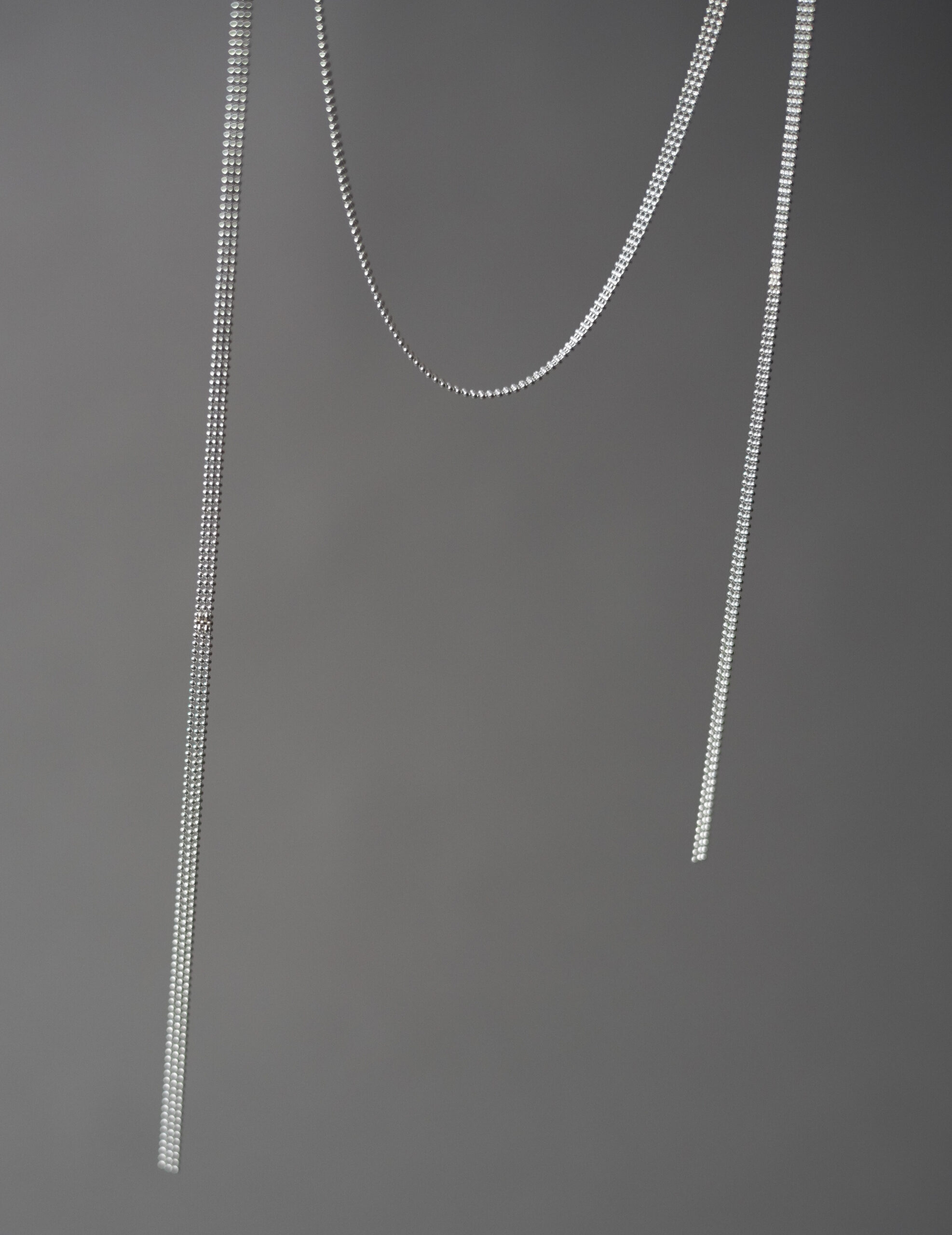 The ALTAR SCARF silver necklace from Greek jewelry brand Maggoosh is a scarf-inspired chain, combining elegance with a contemporary touch. Designed to be wrapped around the neck like a scarf, it can be knotted or left to drape gracefully. It also creates a stunning effect when worn backwards with an open-back dress, offering a sleek yet luxurious styling option. Handcrafted from sterling silver, this piece features a lightweight, fluid design with a 145cm length, making it a versatile statement accessory.