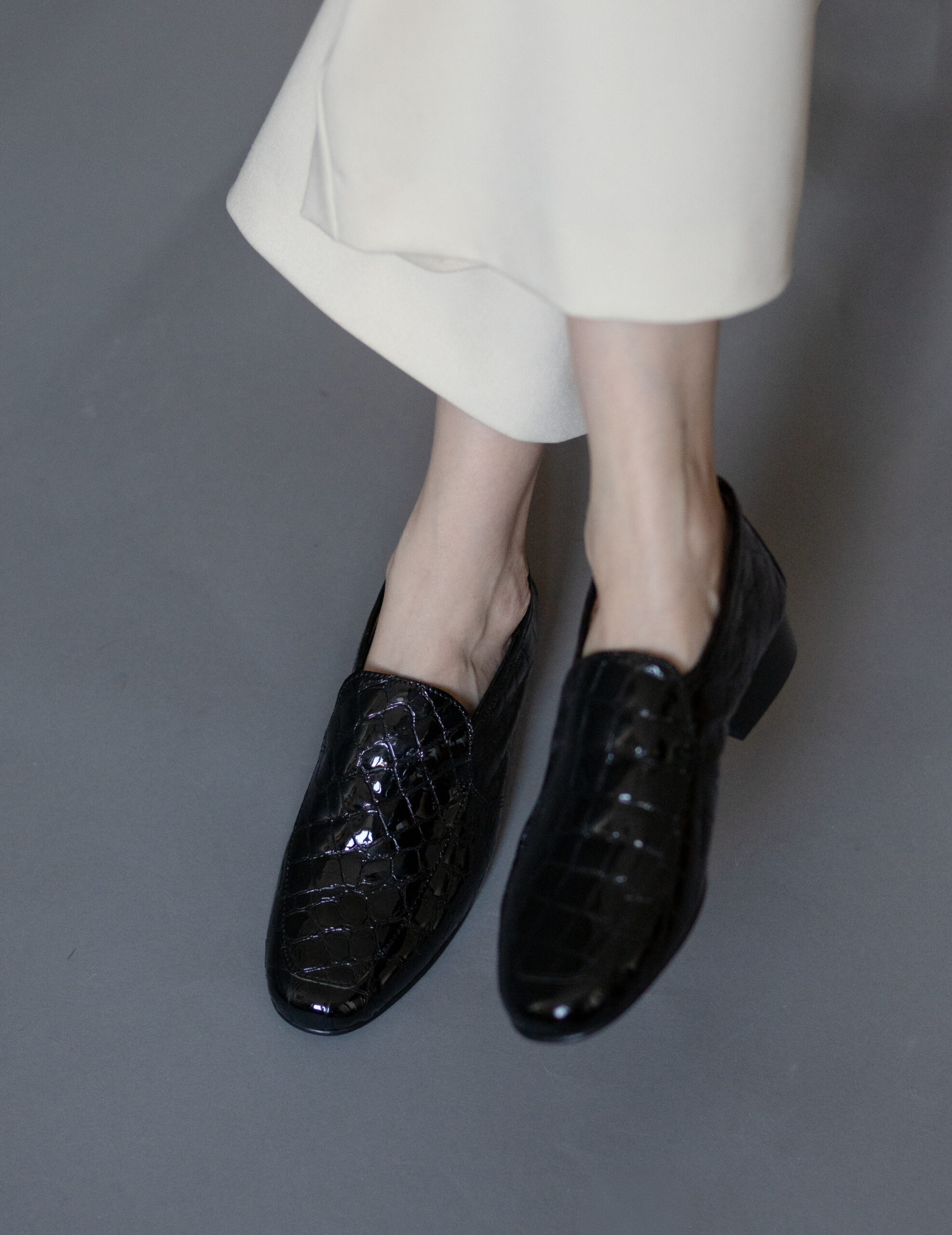 Léo Louisiana 鱷魚紋皮鞋・黑色